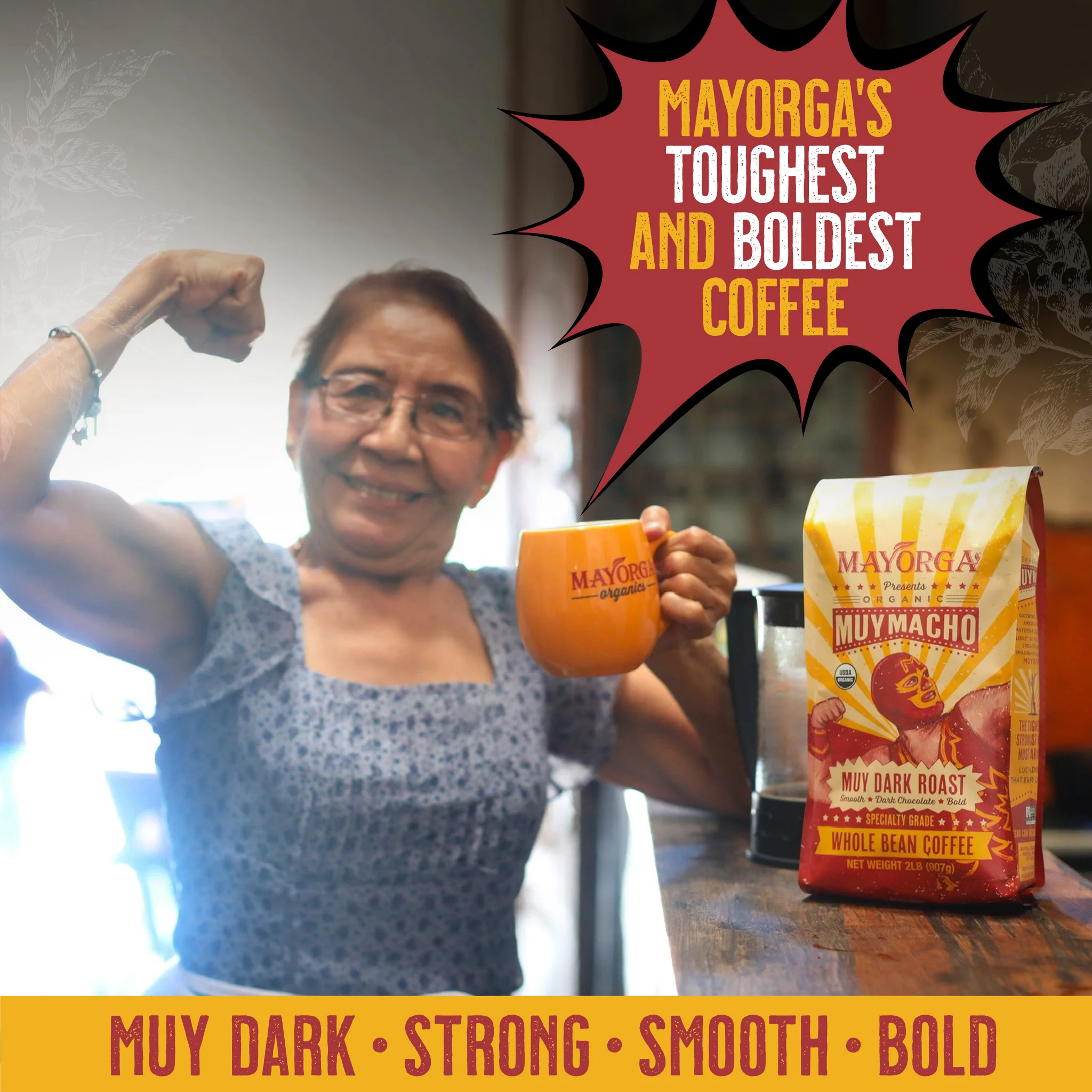 Muy Macho is a blend of 100% organic Arabica coffees from Peru and Honduras. Using our signature Latin slow-roasting process, we craft a deep, dark profile with a sweet chocolate finish. Perfect for those who love their coffee as daring as they are. Read the full blend's story below.